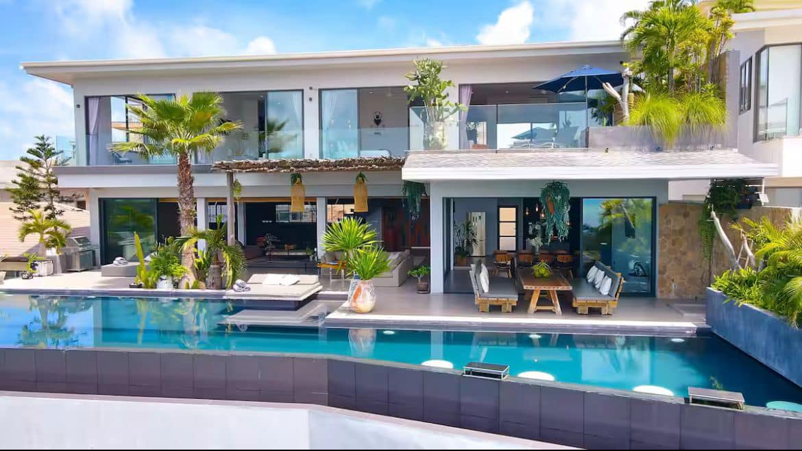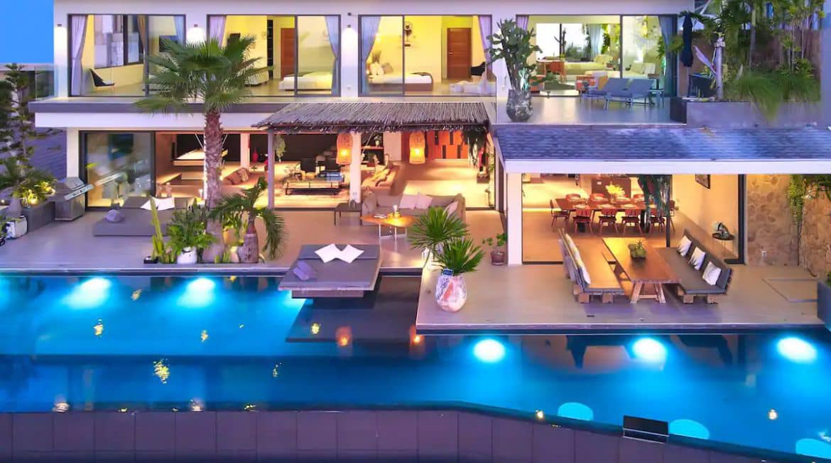 The villa features a massive 20-meter infinity pool overlooking the sea, a spacious 200 sqm indoor living area, and a large outdoor terrace perfect for sunbathing, entertaining, or relaxing with the sunset. Inside, you’ll find 4 beautifully appointed en-suite bedrooms, a fully equipped modern kitchen, and entertainment perks like Netflix, a PS4, billiards, and high-speed WiFi.