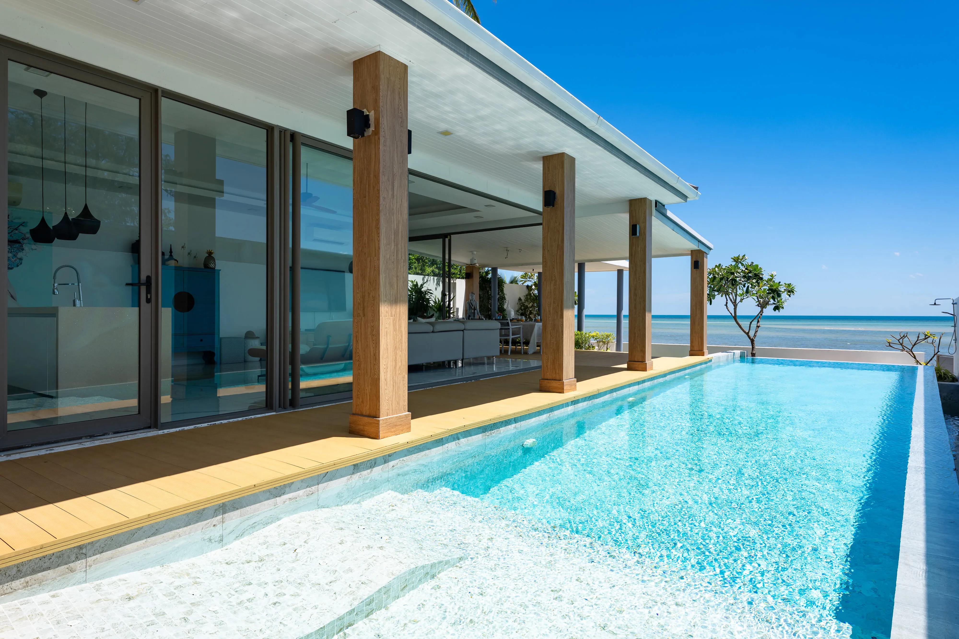 Step into an elite realm of tropical sophistication with this immaculate 3-bedroom villa located directly on Bang Kao Beach in Koh Samui. With a generous 229 sqm built area and expansive 520 sqm of land, this villa delivers resort-style living, featuring a private pool, sun lounges, outdoor sala dining, and serene sea views. Completed in August 2017, the fully furnished residence offers immediate occupancy or turnkey rental potential, making it a powerful “Luxury Villa Koh Samui” opportunity. Boasting absolute beachfront access and strong holiday rental demand, this is an outstanding “Investment Opportunity”—or the ultimate “Tropical Living” escape. Don’t miss your chance to own paradise; schedule a viewing now and experience the lifestyle before it's too late.