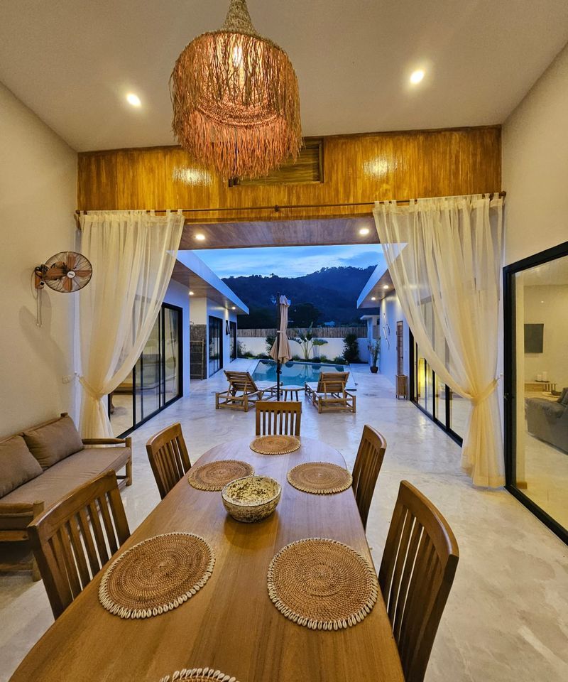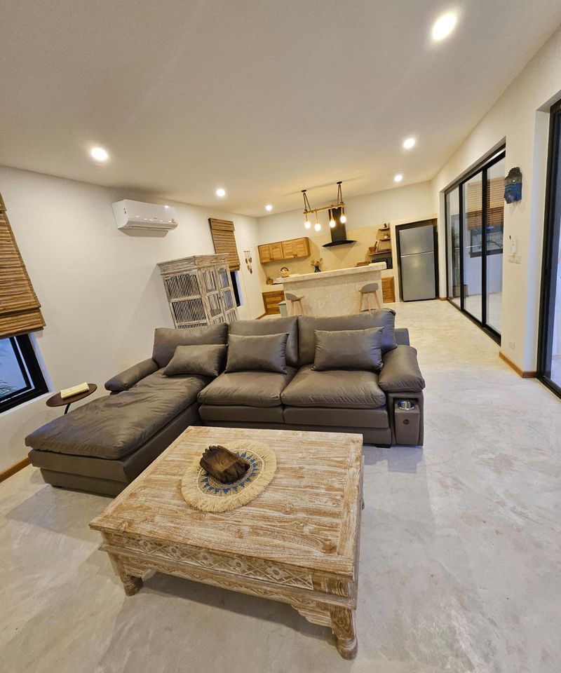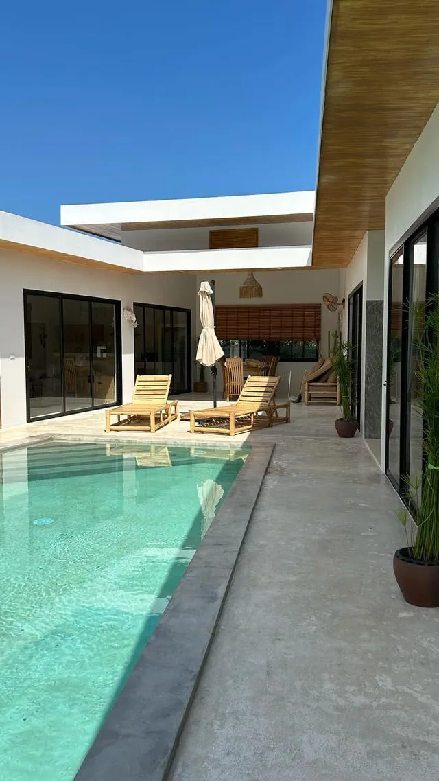 Discover refined tropical living with this stunning 3-bedroom, 3-bathroom house located in the rapidly evolving Maret area of Koh Samui. Featuring 148 sqm of elegantly designed indoor space, a 32 sqm private pool, a 14 sqm sunset terrace, and set on a generous 471 sqm Chanote-titled plot, the residence is completed in January 2025 and comes fully furnished.
