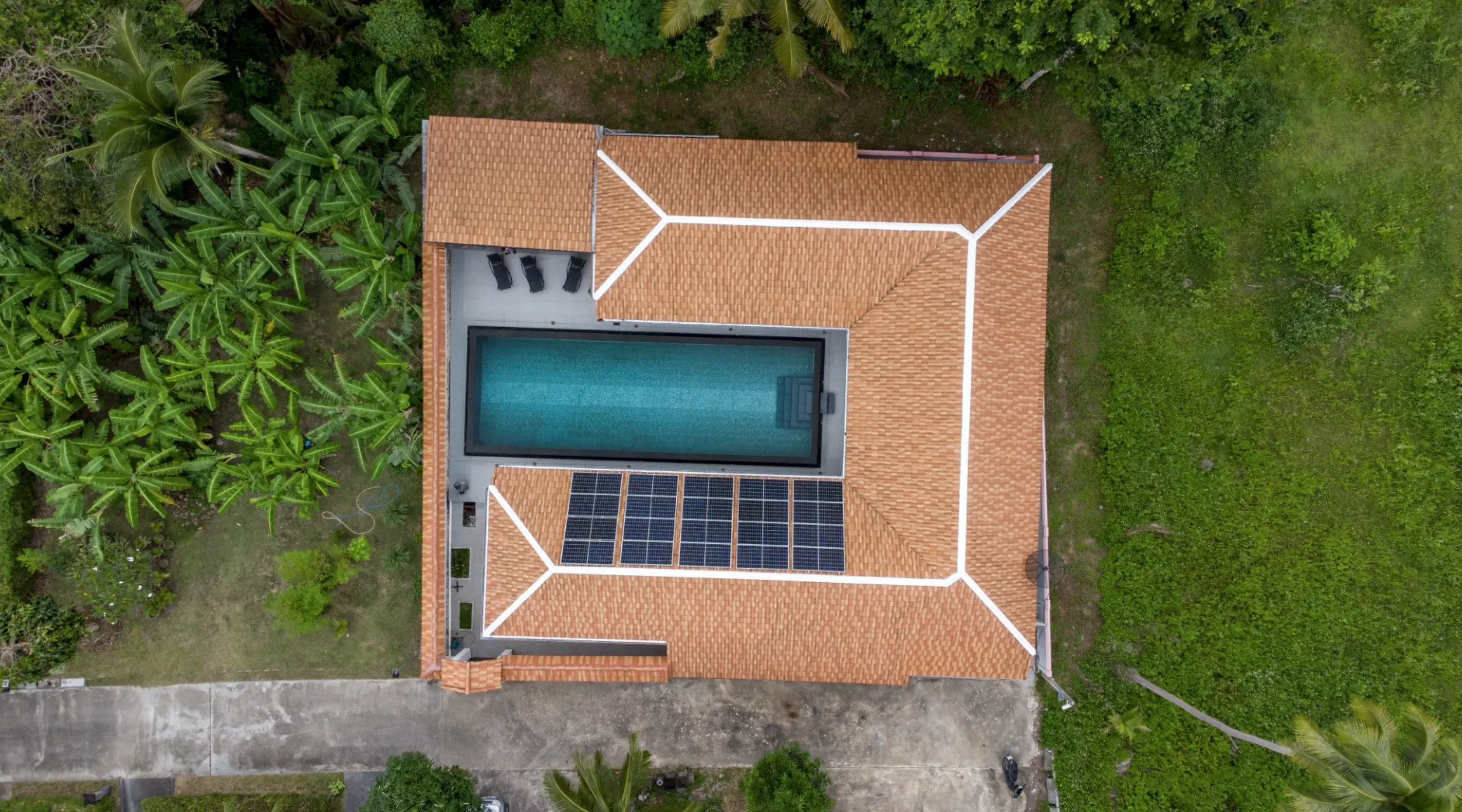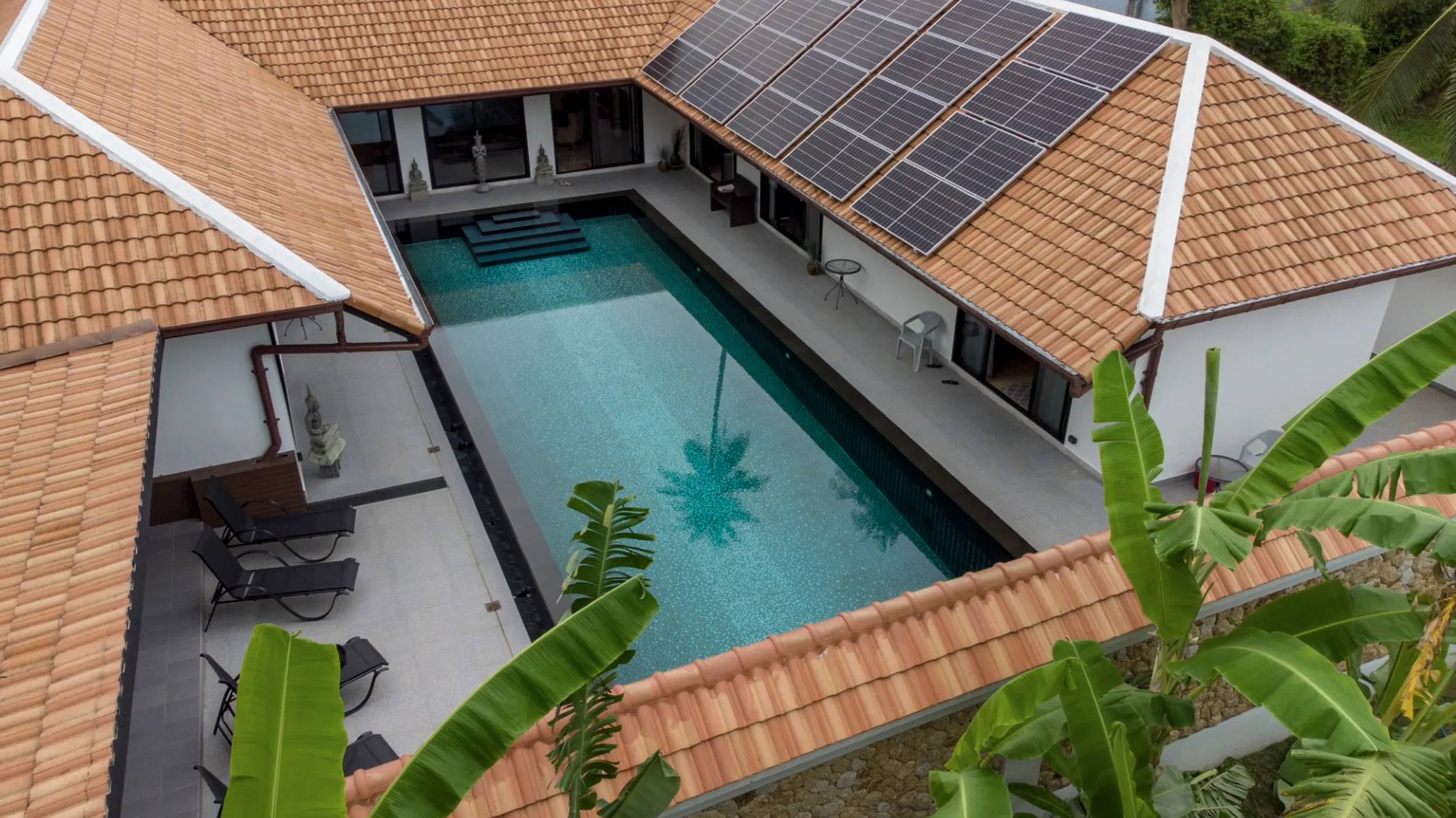 Discover this outstanding 5-bedroom villa in Na Mueang, Koh Samui, a true fusion of tropical luxury and sustainable design—your gateway to tropical living and smart investment. Spanning 370 sqm of elegant indoor space and set on a 575 sqm plot, this fully-furnished residence boasts a magnificent 16 × 6 m pool, solar-powered eco-features, private garden, and premium finishes. Completed in January 2012, the villa is ready for immediate use or rental conversion.